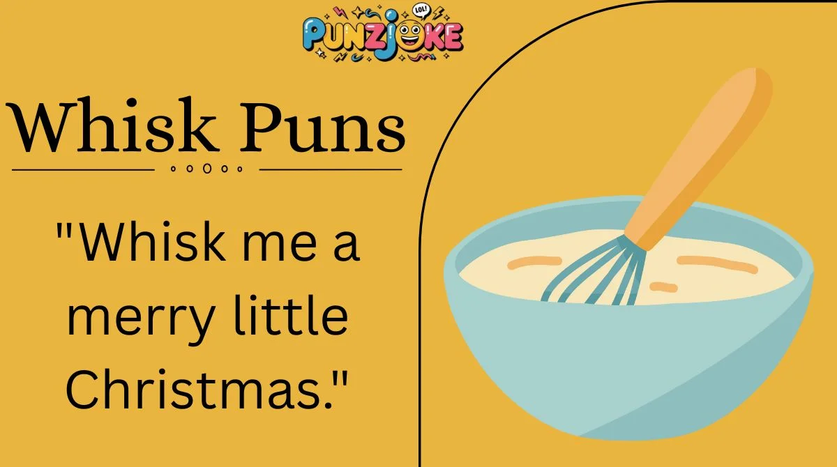A whisk pun is a humorous play on words involving the kitchen tool “whisk,” often combining baking terms with clever language.